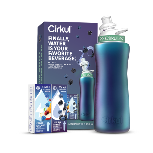 The 32oz. Chameleon Stainless Steel Bottle and Lid mirror the magical wonder of the color-shifting chameleon. This Cirkul Starter Kit includes an insulated bottle that keeps your water ice-cold all day and a flavor cartridge system that makes drinking water more delicious, fun, and personalized.